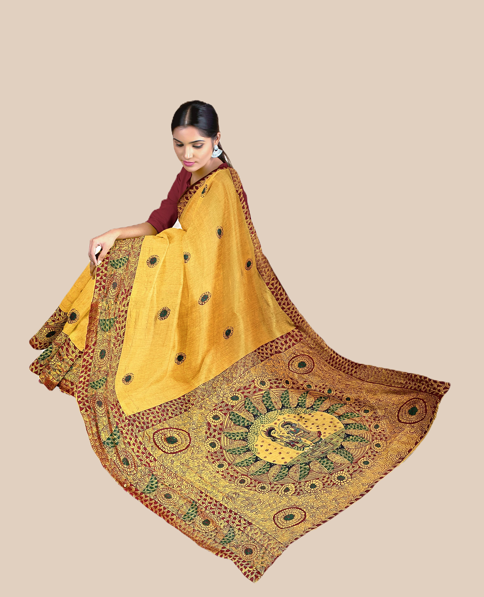 Rooted in 2,500 years of tradition, each saree is a hand-painted masterpiece crafted with love and centuries of heritage.